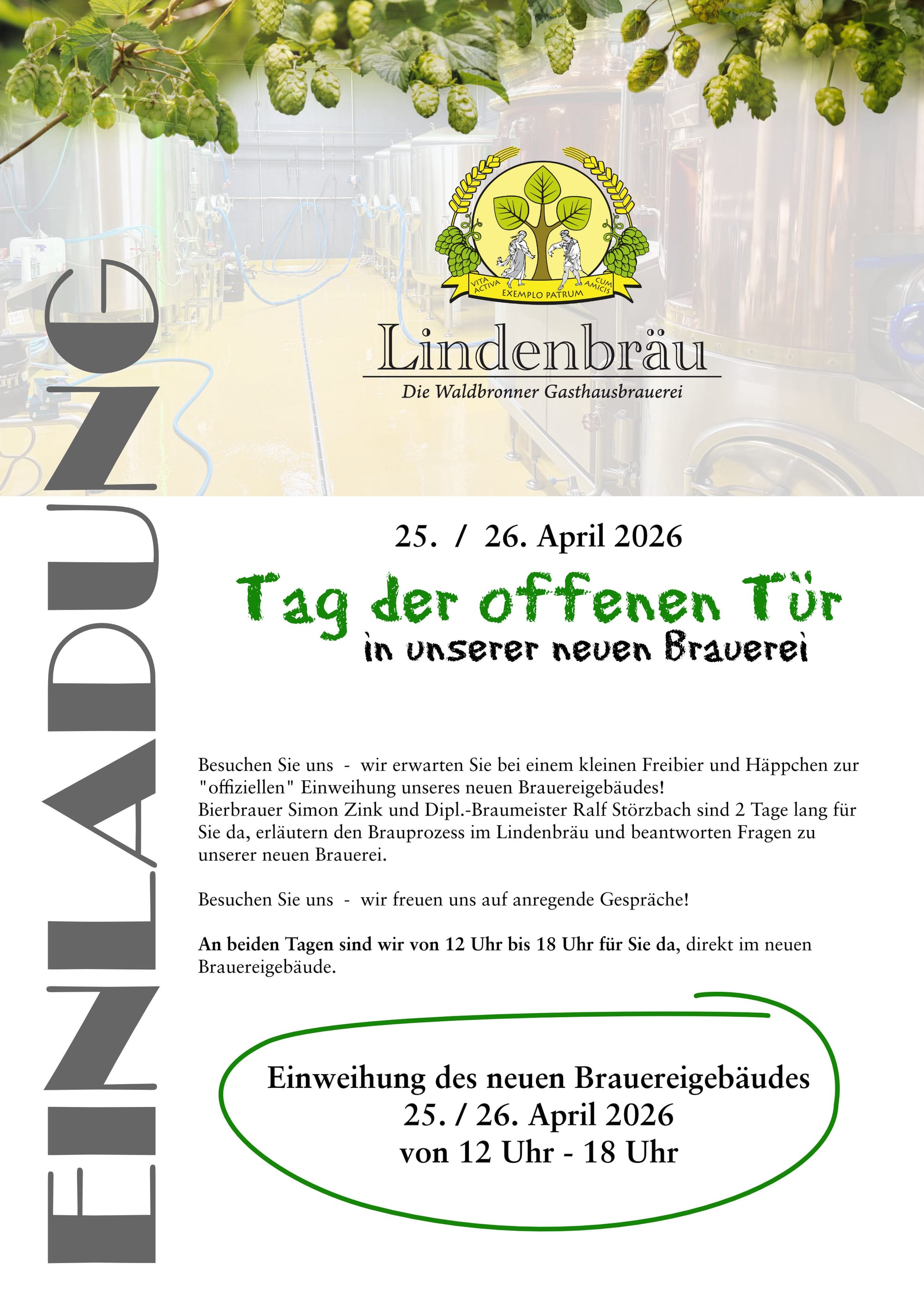 Symbolische Eröffnung der neuen Brauerei am 25./26. April 2026