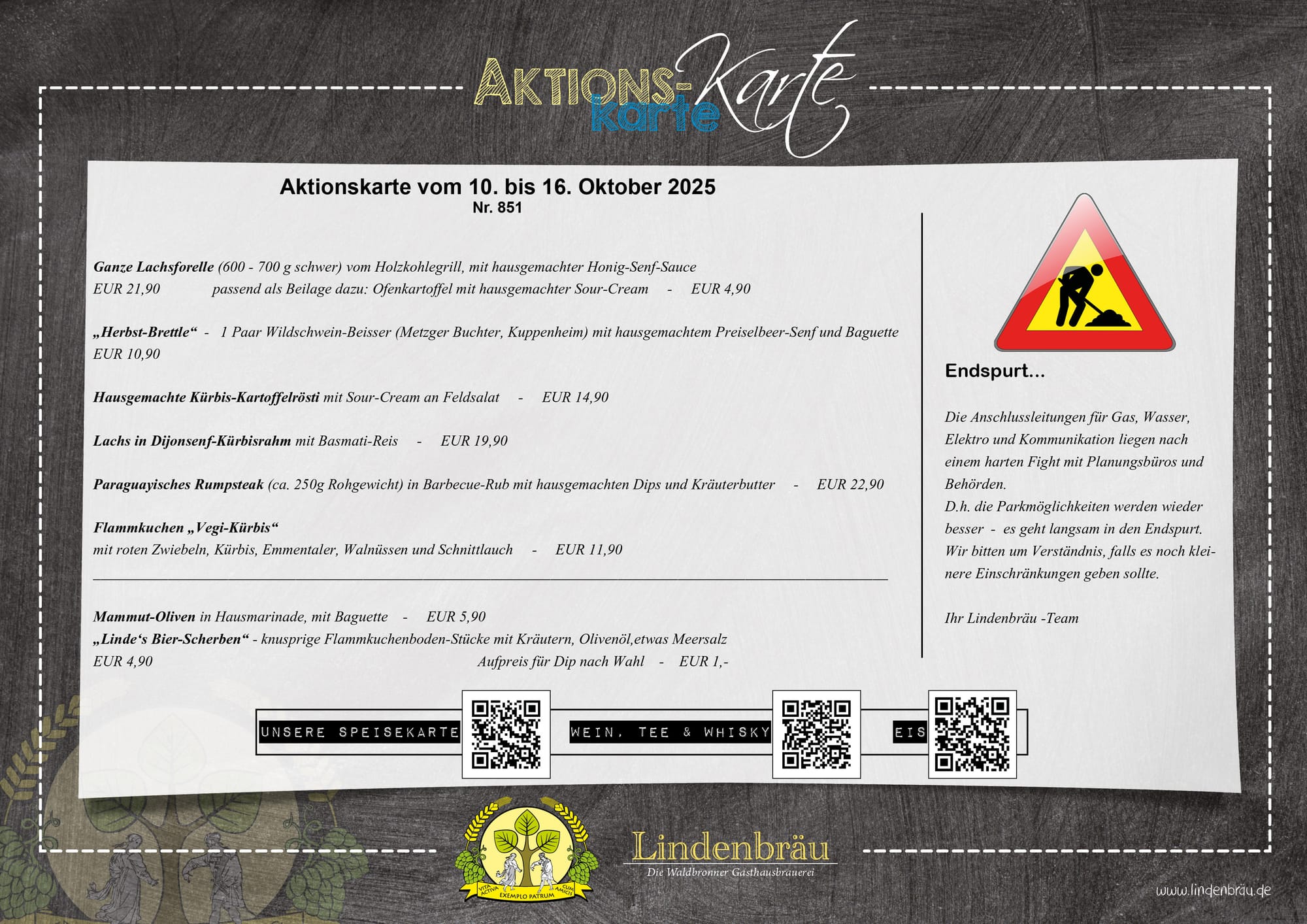 Unsere Wochenkarte vom 10. bis 16. Oktober 2025 Küchenchef Benjamin Bozic und sein Team wünschen guten Appetit!